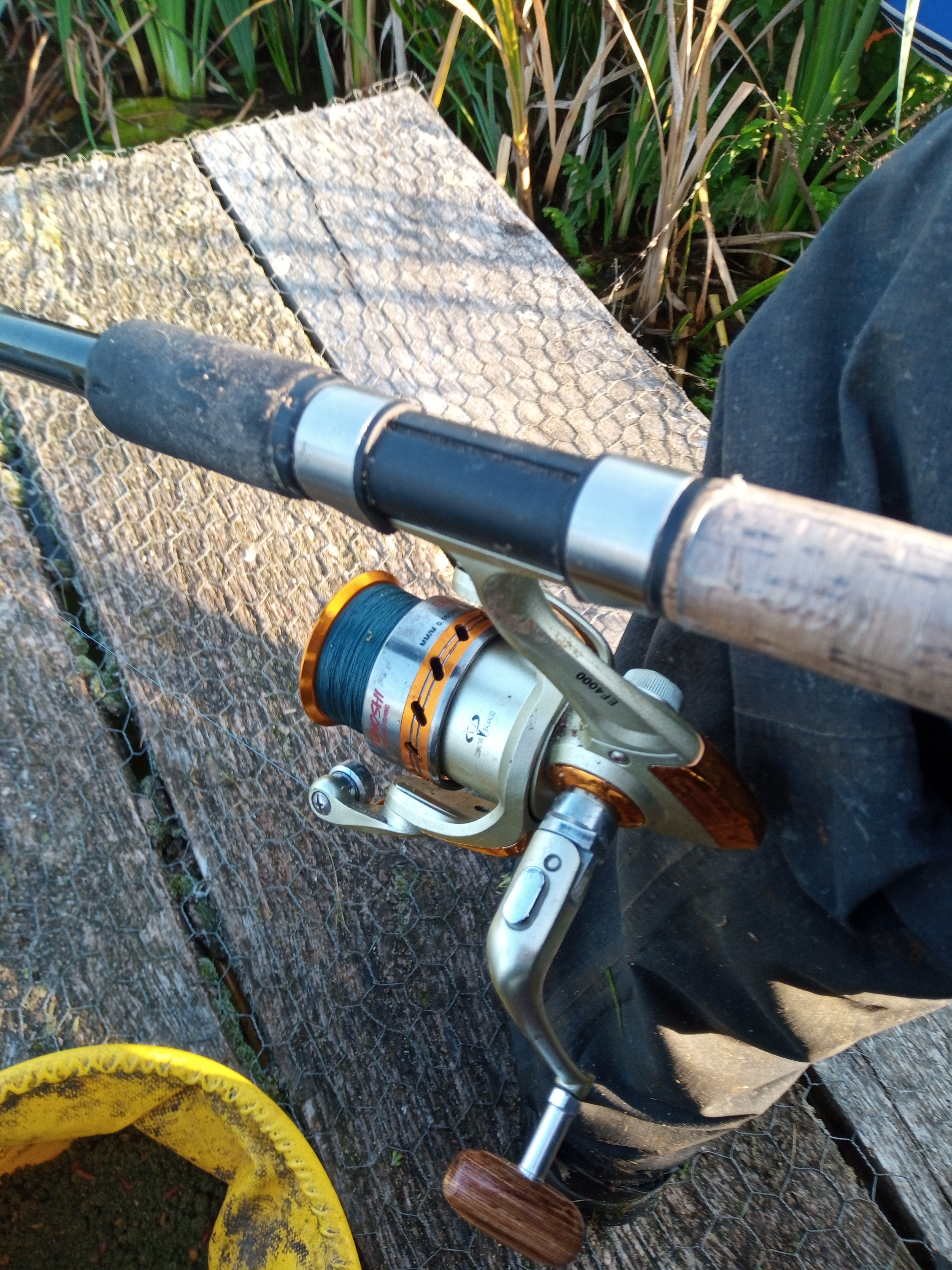 Following my blank I opted two days later for a session on the Sunday from 8-30 to 12-30 on the shallows, peg 3 to be precise. The peg was one that looked difficult to access at the start of the season still had all the potential hallmarks of a disaster waiting to happen with the reeds to the left and right but centrally it had cleared a bit. I began with my usual rig for the shallow end and cupped in the habitual 3 balls with 2mm pellet, wheat and a few pieces of corn. Third put in I had a rudd then it went quiet before the float rose like a polaris and a strike saw the elastic come out for a bream of 2-3 to be guided through the vegetation to the net.