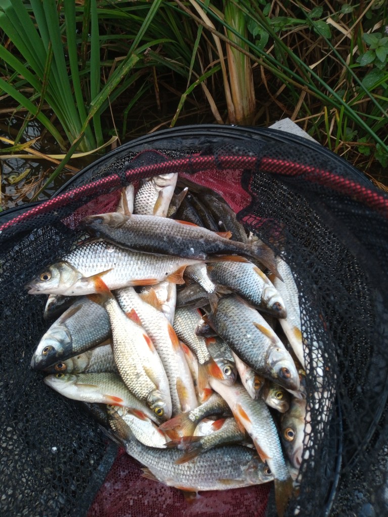 The weather Gods then took hold and it wasn’t until the following Friday that I was able to get out again, returning to peg 10 at Bowood for a short session. Setting up the usual way it was a case of picking out a couple of fish at a time from the coloured water (not as coloured as I expected though!). I ended up with 22 roach, 4 skimmers,18 rudd and a hybrid for 4-02, no runs on the pike rod at all.