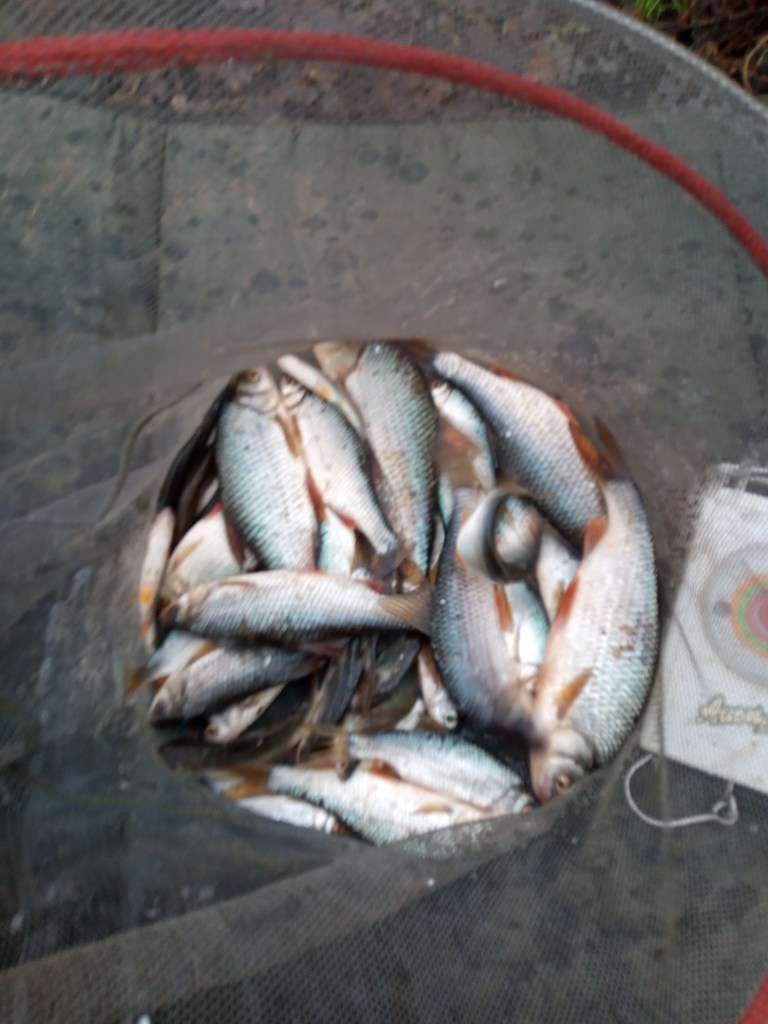 Ten minutes in I had my first bite which I missed, next cast missed again, third cast I hooked what looked like a hand sized skimmer that flipped and came off! I then began to get a run of roach and managed to keep them coming by introducing a ball of groundbait every 40 minutes or so. The pike rod was totally inactive! Towards the end of the session, a large double flashed through the surface chasing the roach, I then moved the pike rod into that area but to no avail. I had set myself a target of 50 roach if possible and at 12:15 achieved that and decided to pack up. Whilst doing so the pike swirled again! The 50 roach plus one rudd and one small skimmer weighed 5-1.