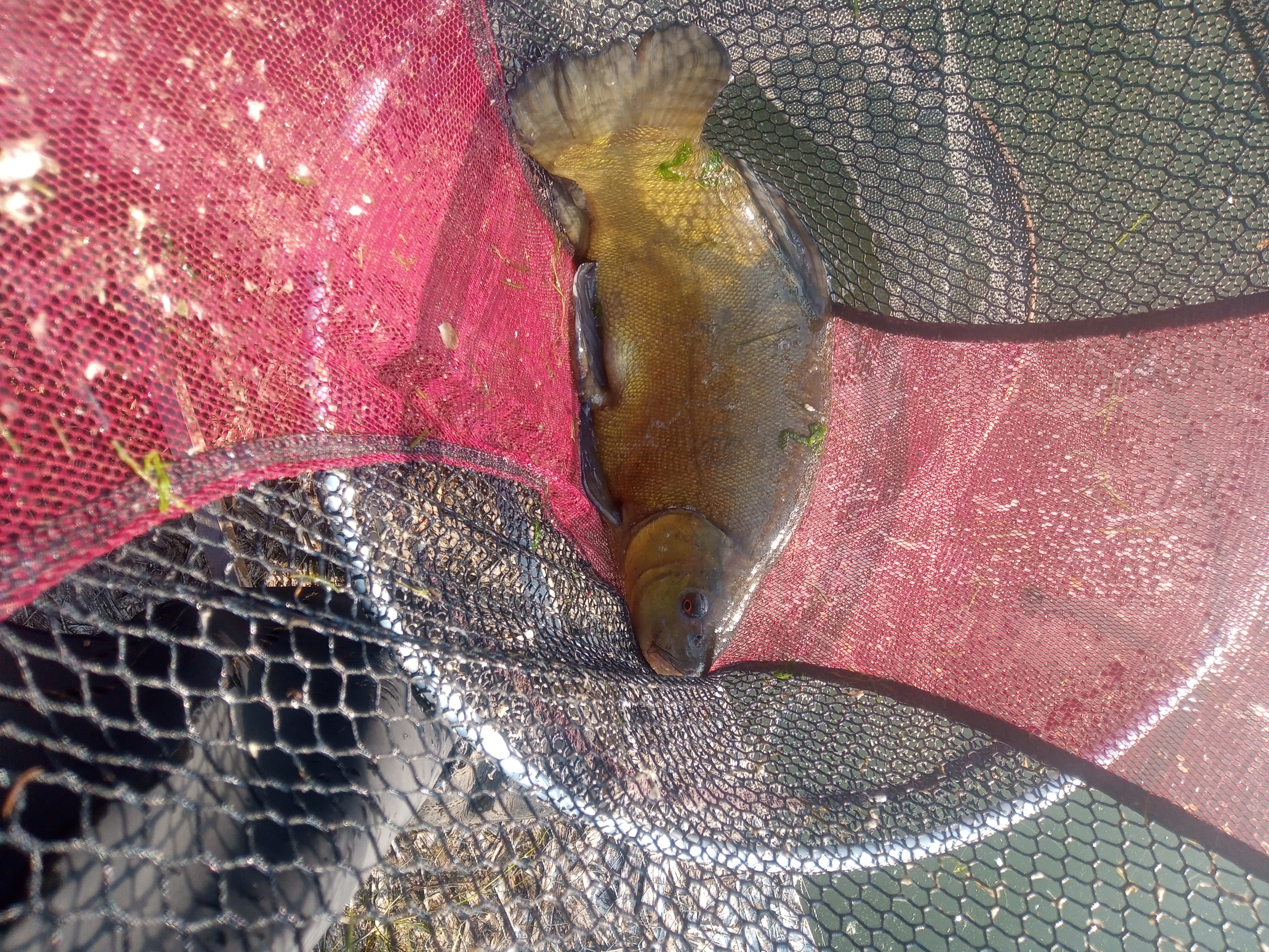 Friday sees me back at Peg 3 for a morning session (8:45 to 1:45). Starting with the Ugly duckling rig and maggot, I put 3 balls laced with hemp and wheat out at the start and after 20minutes had a bite – a small skimmer. This was followed by 3 further small skimmers and a roach before changing to corn. A 15 minute lull was interrupted by a small bream/large skimmer of 1-11, a further lull was broken at 11am by the first of 4 tench, 2-06, 4-12, 5-04 and 3-09 and not a single fish lost! That gave me a level 18lb and the walk back to the car was not as bad as a result!