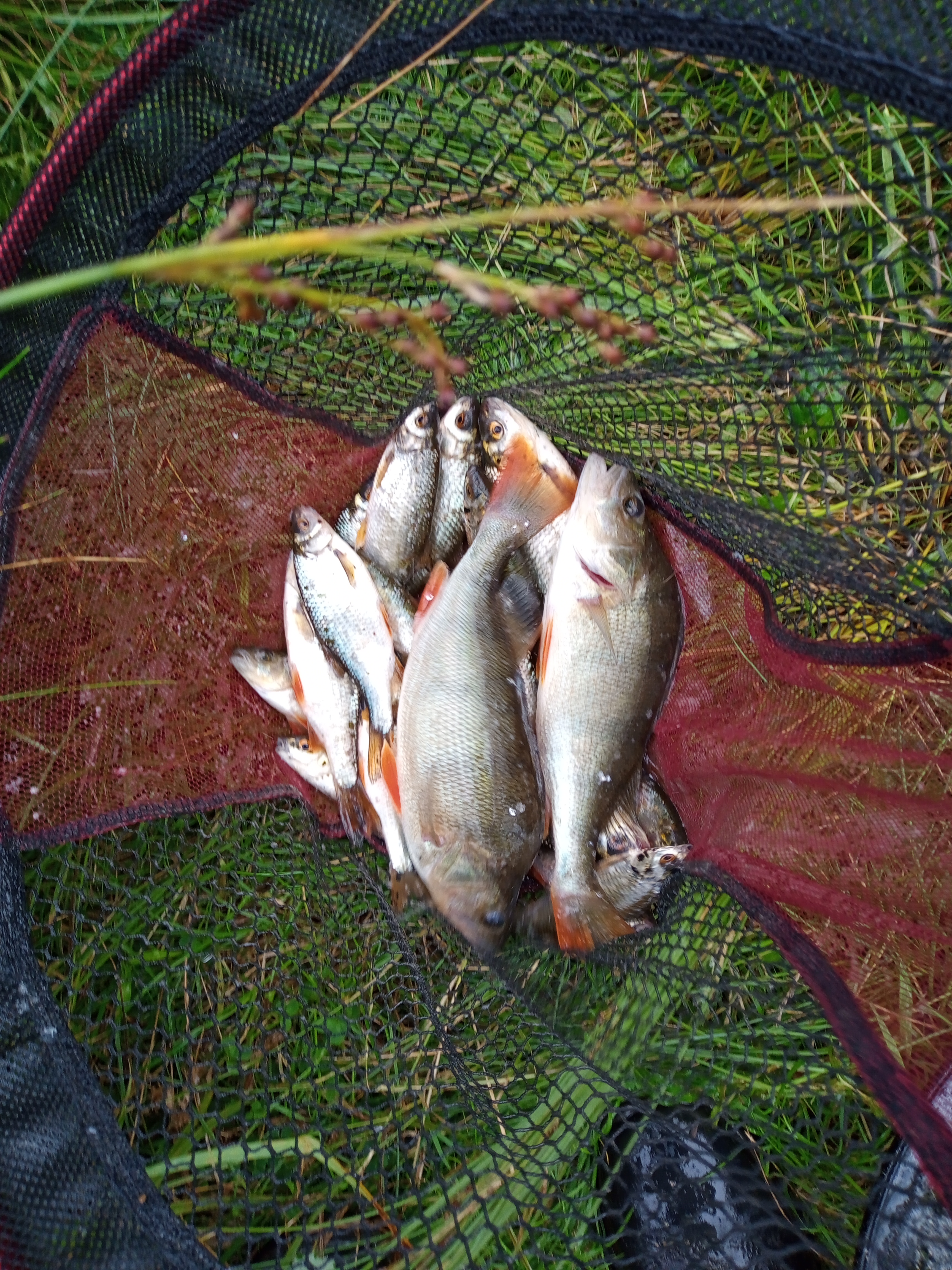Next day (Saturday) was my last chance before returning to Birmingham again, so I opted to set up on the Pondtail peg 2 and put a feeder out two thirds across at 45 degrees with chopped worm in the feeder and worm on the hook, while fishing a 5m Chinese whip. The feeder was up the bank after a couple of hours after 3 perch were the only interested parties and I concentrated on the whip which was going better than previously but the bites cut out after my 50th roach, a switch to double corn saw another 27 slightly better roach put in the net to join the others along with two micro perch. I thought I had about 5-6lb but on weighing them I was surprised to see the scales swing around to a level 9lb.
