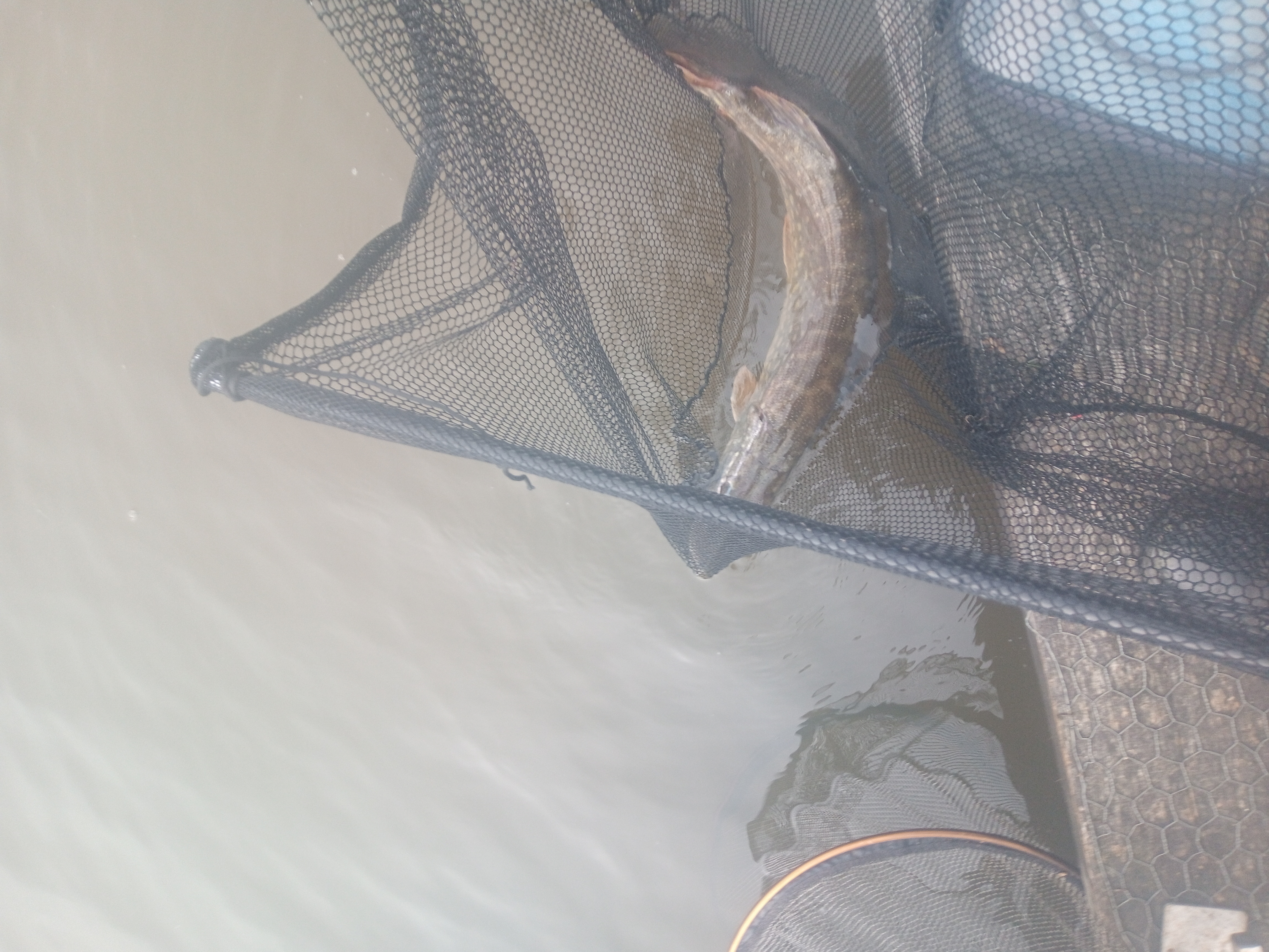 Two days later I was back at peg 10, the water was still icy and I started the same way, very cautiously, this time after and hour and twenty minutes the float dipped and I avoided a blank with a net-able skimmer that weighed 10oz, this turned out to be my only bite on the pole! At 11:45 the pike float disappeared and the strike produced a solid response a very welcome pike of 12-10 and that was it with me packing up at 12:45.