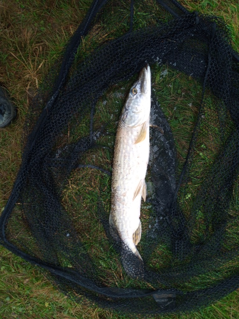 The roach were the first to appear on double maggot and after about 4 fish I switched to corn and while the bites were not as fast in coming the stamp of fish was better. After about an hour I had a run on the pike rod that I briefly thought I had hooked but then the bait came flying back at me, undetered I cast back to roughly the same area – 10m as I had twitched the initial cast after 40mins- and fifteen minutes later the float bobbed then slid away, this time the fish was hooked and a jack of 5-01 came to the net. I ended up the session with 23 rudd, 16 roach and 2 skimmers to give me a 10-10 total with a further missed run and a lot of the mysterious bobbing! The angler on 10 missed two runs also but did get a pike of 13lb.