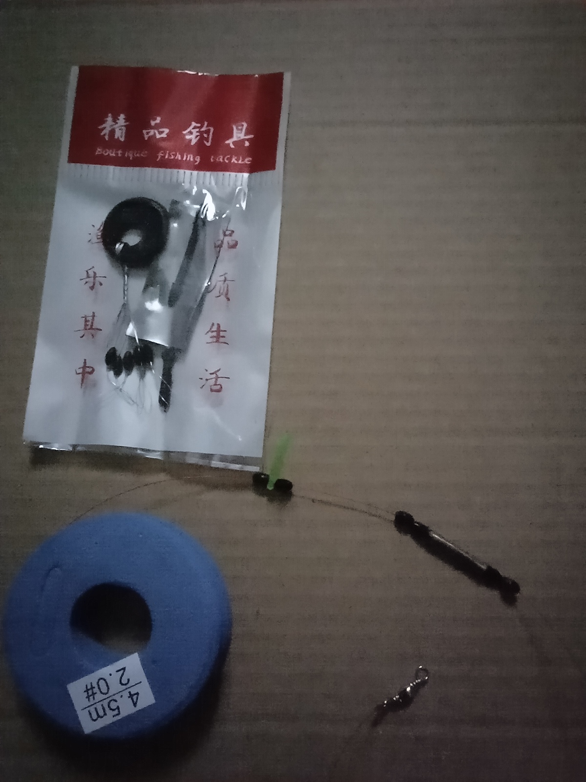 As you can see the rig consists of a small float adapter held in place with two float stops then a black plastic tube with metal wrapped around it, held in place by two float stops at either end leading to a swivel that they attach the hook length to. The rigs in China that are provided when you buy a whip are slightly different in that they have a two hook hooklength and have a pole winder type attachment that straps to the whip for transport purposes.