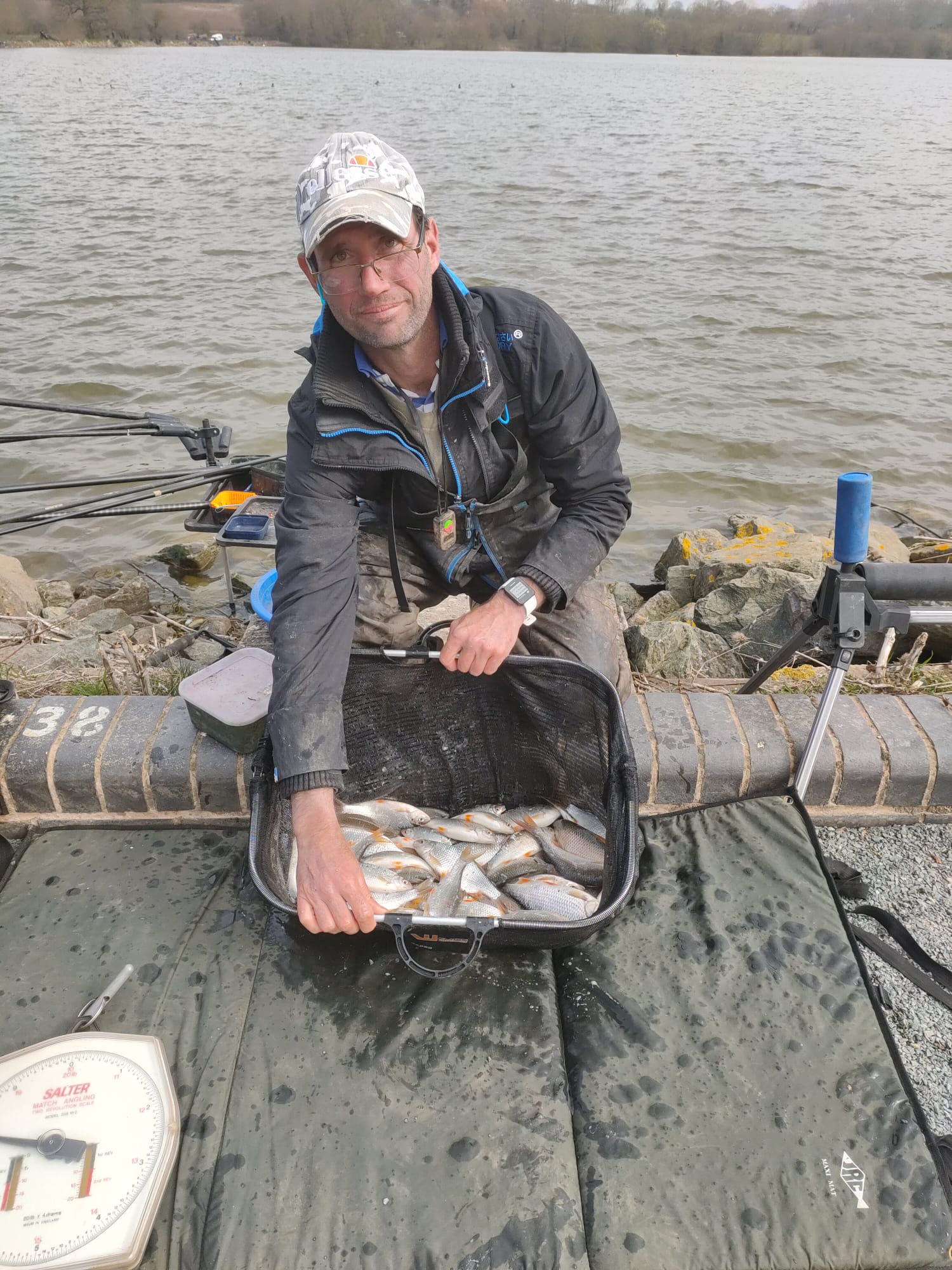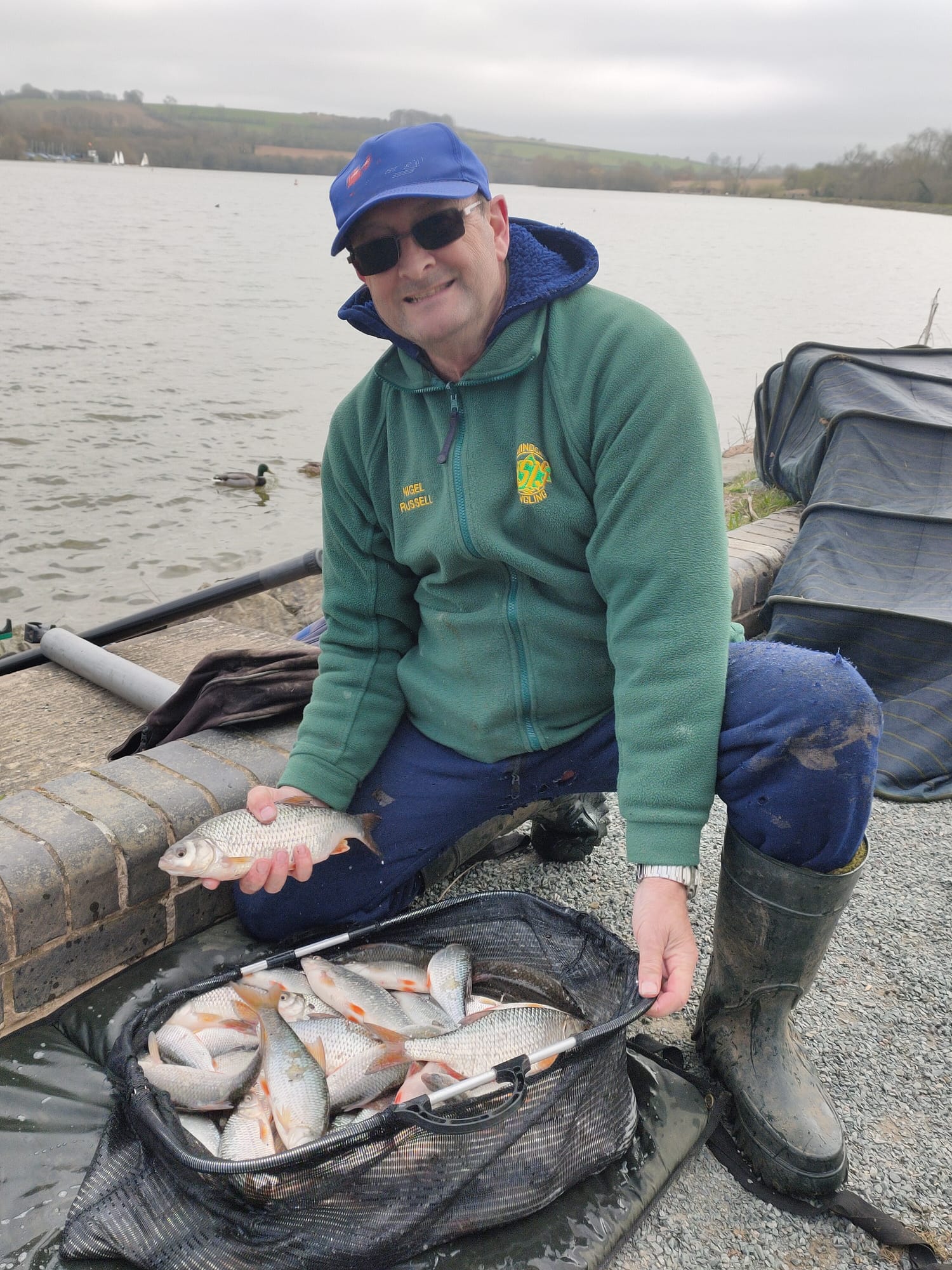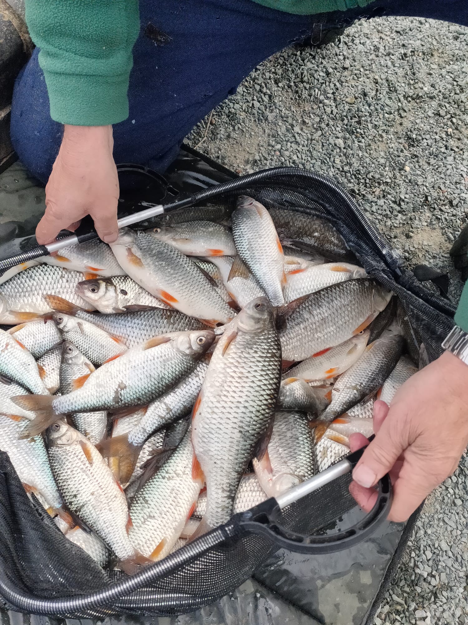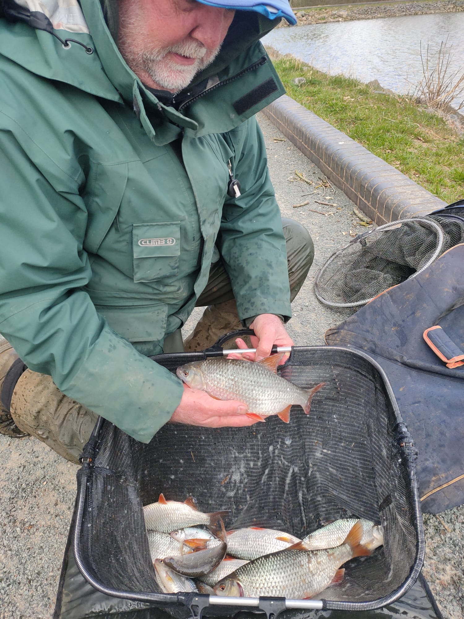 The water level had dropped about 4-6inches and the wind was not nearly as strong but cold! I set up on 34, Nigel on 36 and Darren on 38. I began on the whip with the same box and rig and although I had brought a pole and rods I stubbornly stayed on the whip for the 5 hours! I began well and had eight decent roach in the net in the first hour and then the bites died! Single maggot, double maggot, caster, off bottom, hard on bottom, whatever I tried I could not buy a bite while Darren and Nigel were getting consistent fish. In the last 4 hours I had 4 fish, 2 of those came in successive put ins in the third hour, one came in the fourth hour and the final roach was foul hooked in the tail! Towards the end a pike angler came along and asked how we doing, when I told him he said that he often had big pike out of that peg and that confirmed my suspicions, especially when the bailiff came to see the weigh in and said that I probably had “the big pike” sitting in front of me!