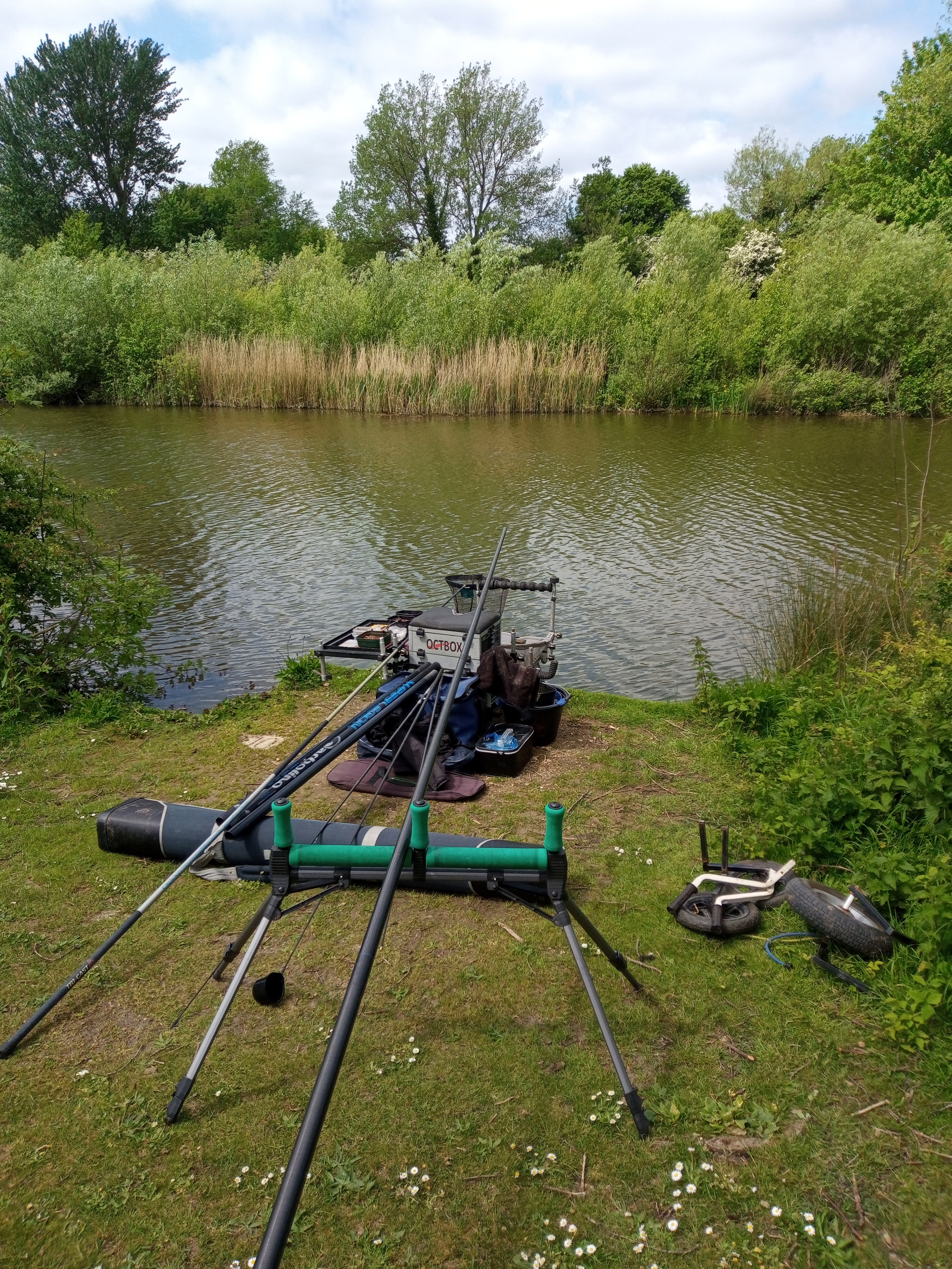 May starts with a lot of household painting chores but my focus soon moves on to the impending Summer League starting with a lake match at South Cerney’s Wick Water complex on Gillmans and Stait Lakes. The league consists of eleven teams of 4 so the match in effect would be two sections on both lakes. Previously I had visited one of the bad pegs on Stait and a not so good one on Gillmans, the rational being that if I was fortunate to draw on one of the better areas I am confident that I would do okay, but the team result would hinge on those unfortunate to be in the poorer areas, so any method of putting ounces in the net would be worth exploring.