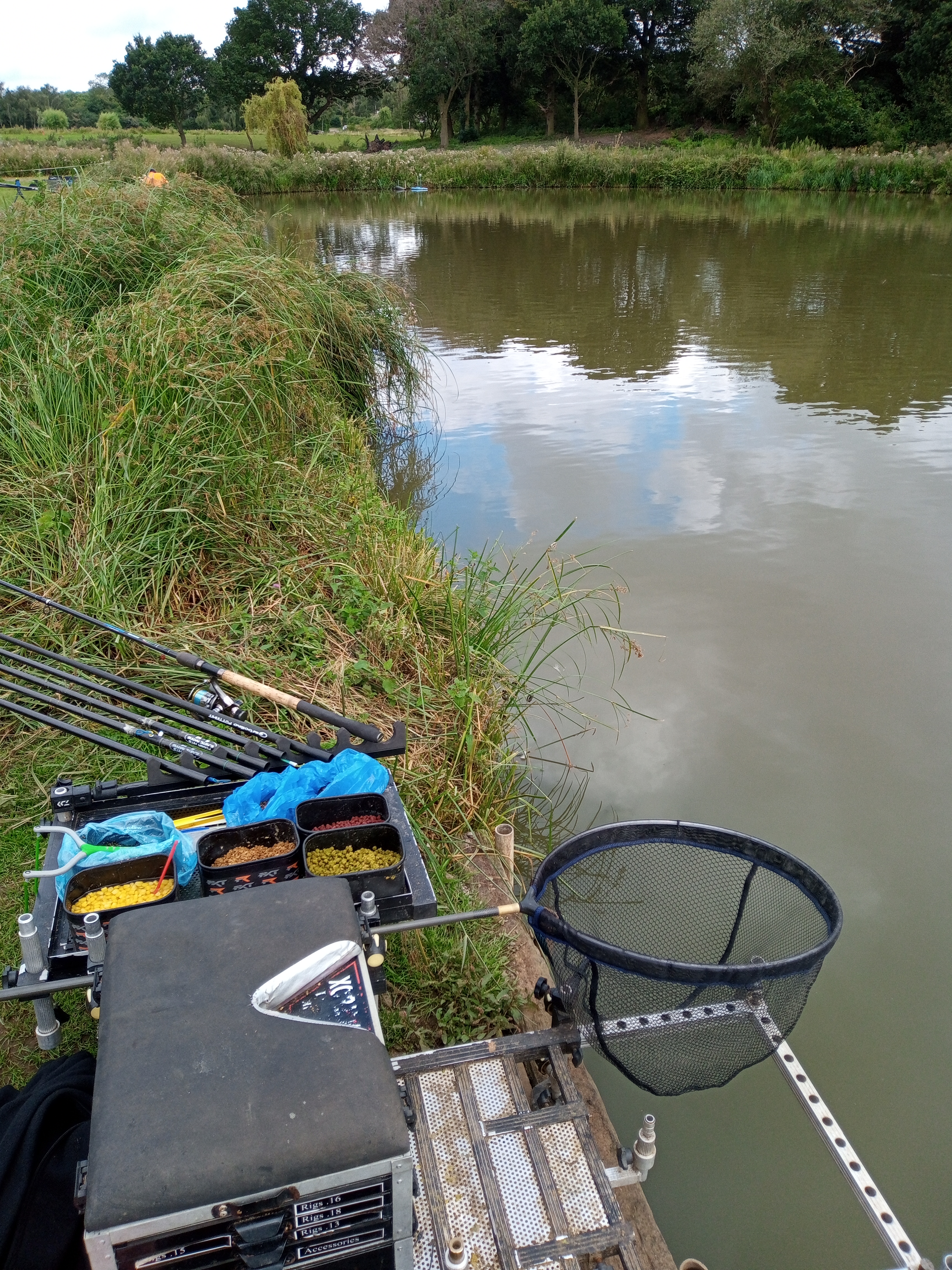 Monday 18th sees me to return to Bowood but this time settling in on peg 7 as 10 was occupied! Fishing 9:30 to 12:15 it was fairly uneventful with my usual set up, no pike runs and twenty three small fish (20 rudd, 2 roach and a blade) for 1-10. The weather was not much help with the rain affecting the river and muddy water going into Bowood so on Wednesday I bit the bullet, or rather the wife suggested, I went to Blacklands.