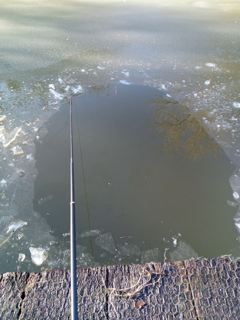 Following the match at Pewsey the weather takes a turn as the temperature falls at the start of the week to sub-zero, particularly over night but then becomes ever so slightly milder for the next two days. Friday sees me head for Bowood, my intention on Thursday had been to go on the main lake but I decided on the morning to go to the Pondtail instead and fish the whip. Getting to the bridge area I was met by two shocks- firstly the bridge was closed and a large part of it was missing, secondly there was a swan standing on the ice on the Pondtail – both lakes were frozen!