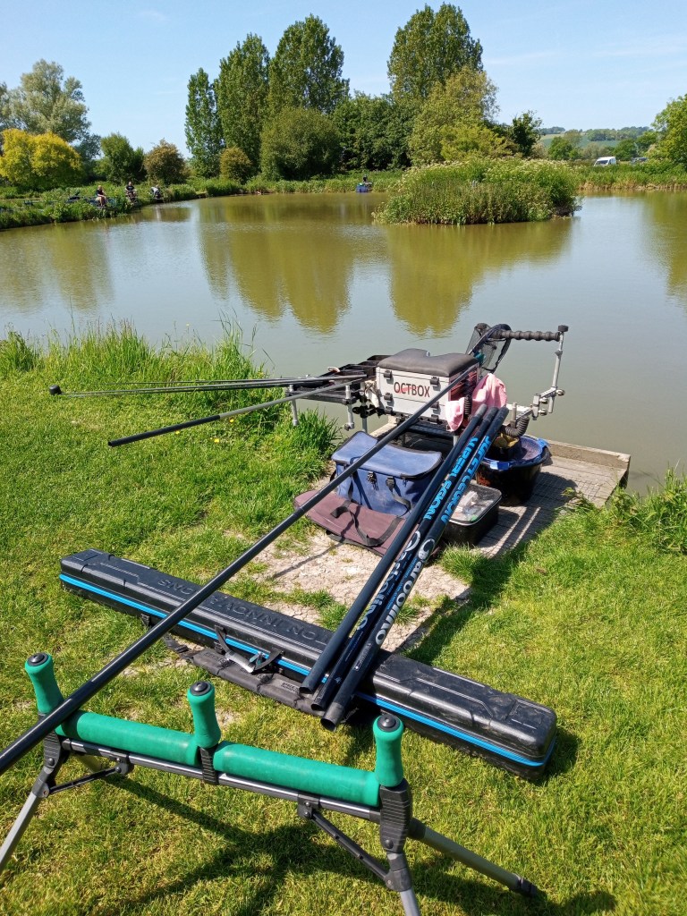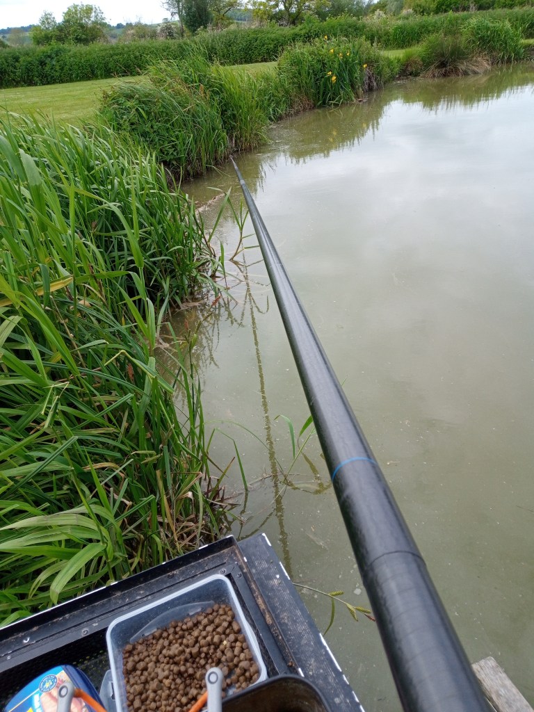 Moving swiftly on to the 23rd, I was due to fish a two dayer at Witherington Farm, just outside Salisbury, on the Saturday and Sunday so headed down there for a bit of a practice as I had not been there since the same match last year.Selwood and Barnmoor were closed due to the carp spawning so I ended up on Cottage peg 13, with the lake busy with several anglers fishing 2 rods for carp. I set up a rig for the margins on 0.20mm line to a 12 and a homemade BGT1 style float, and a 10m line with 0.16mm line to a homemade Chianti style float to a 16. Micros were introduced on the 10m line along with 2 balls of fishmeal groundbait and a few grains of sweetcorn, while the margins were given 4mm pellets and some corn. The day started okay with a carp of 4-04 coming to the 10m line within 10minutes but there after it slowed and I found that only micros being introduced would inducer any activity. A carp of 8-12 foul-hooked in the tail provided some heart-pounding action but 4 bream of about 2 to 2.5lb were the only other takers on the 10m line. The margins produced carp of 1-04 and 4-08 plus a further bream, 2 roach/bream hybrids and a golden rudd for a total of about 29-30lb. All the while there had been large crashes and splashes coming from Cottage just behind me.