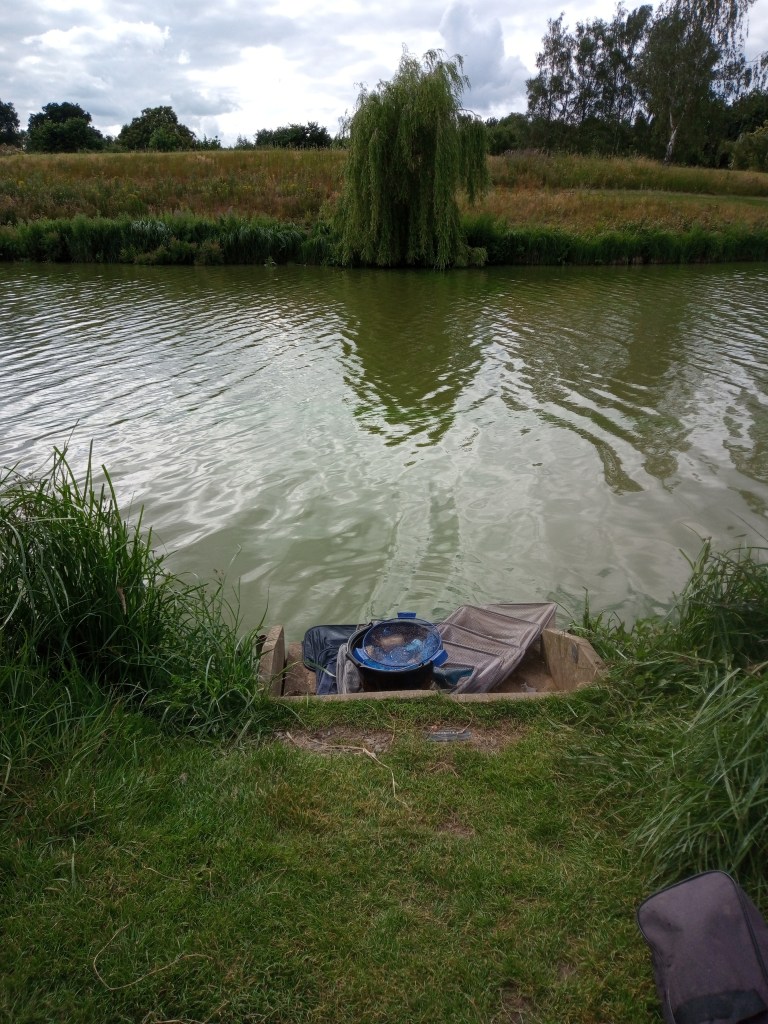 The first proper July visit was on the Wednesday to the Glebe outside Hinckley for a Maggotdrowners match. I was draw on peg 24 and set up a feeder, a pole rig for 11m, one for 5m and one for the margins.I spent too long on the feeder for two carp of around 2-3lb a piece and a couple of skimmers. The day fished oddly with a real lack of activity for long periods in the first half before some more spasmodic action in the second half of the match. The 5m line and the margins did not produce a single fish bar a foul hooked roach which was very odd. All my fish came at 11m to corn with 6mm pellet fired out and the action was a bit like carp, carp, nothing, bream, carp… I ended up with a level 64lb with 17-04 of that made up with silvers. This put me 4th in the 7 peg section beaten by the pegs at the ends but they were paying 4 places so I had a small windfall. Looking at the results after it became apparent that I had drawn down the wrong end of the lake as the bottom 5 weights in the match were from our section!