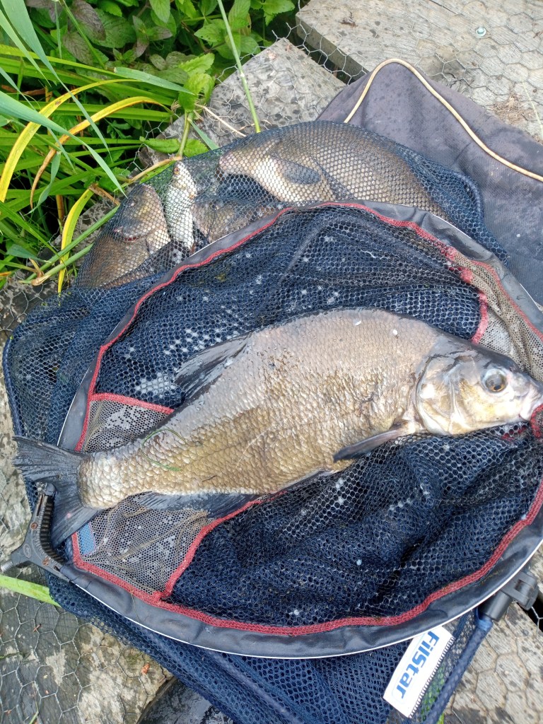 Tuesday sees me make the trip to peg 1 at Bowood, fishing 9:30 to 12:30. First put in to the stalk sticking up at 11m to the left of the swim sees the float glide under and a bream of 2-06 come to the net. I was using a light chianti style homemade float with the 0.3g bulked about six inches from the 14 hook. Five minutes later another bite on the corn sees me lose a bream in the swim – this slowed it a bit until I had another of 2-10. That was it from the left had swim, the bites dried up, possibly due to me losing and catching fish but also due to pike strikes that were taking place in the area. Moving to my other previously fed swim directly in front it was about ten minutes before the float shimmied and lifted , a strike saw a bream of 4-08 come meekly to the net – how often does that happen, the larger bream put up less fight than their smaller brethren! Three further bream came to the net at 3-02, 3-04 and 3-00, there was a large gap between the last two bream as I had a pike take a 3oz roach and played it for about five minutes before it let go of the roach! A second pike strike later bit me off, so apart from the bream I had 1 small skimmer, 2 roach and 5 rudd for a combined total of 20-02.