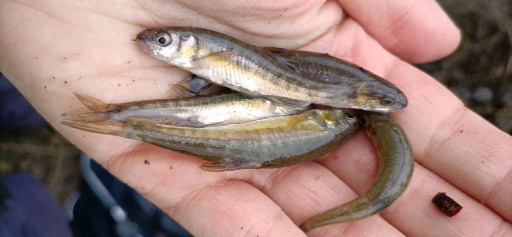 Tuesday was a very short session on the Marden at Hazeland, just intro the section 1 field, both fishing lead in slacks after the flow had increased. I had a minnow and a trout while Gareth had a clutch of minnows in the hour or so we were there.