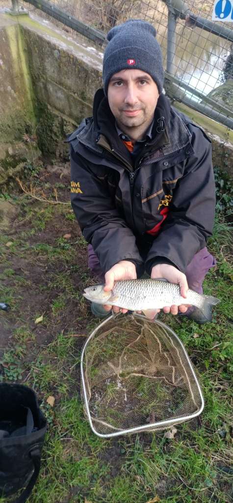Picked Gareth et al up from Heathrow on Saturday evening and Sunday he was itching to get fishing but with Bowood frozen and the river out of sorts we decided to give the river (the Marden) a go at Hazeland, fishing the disabled area by the car park. Fishing for about an hour an three quarters I blanked on the float but Gareth on the straight lead managed to winkle out a small roach and dace.