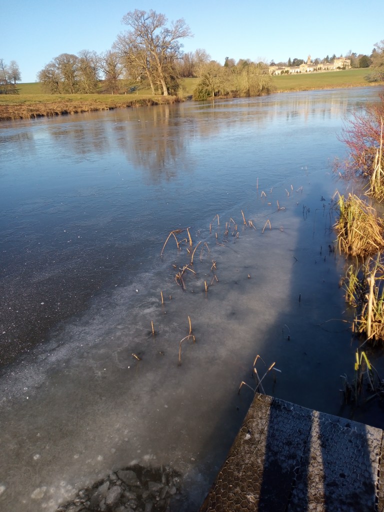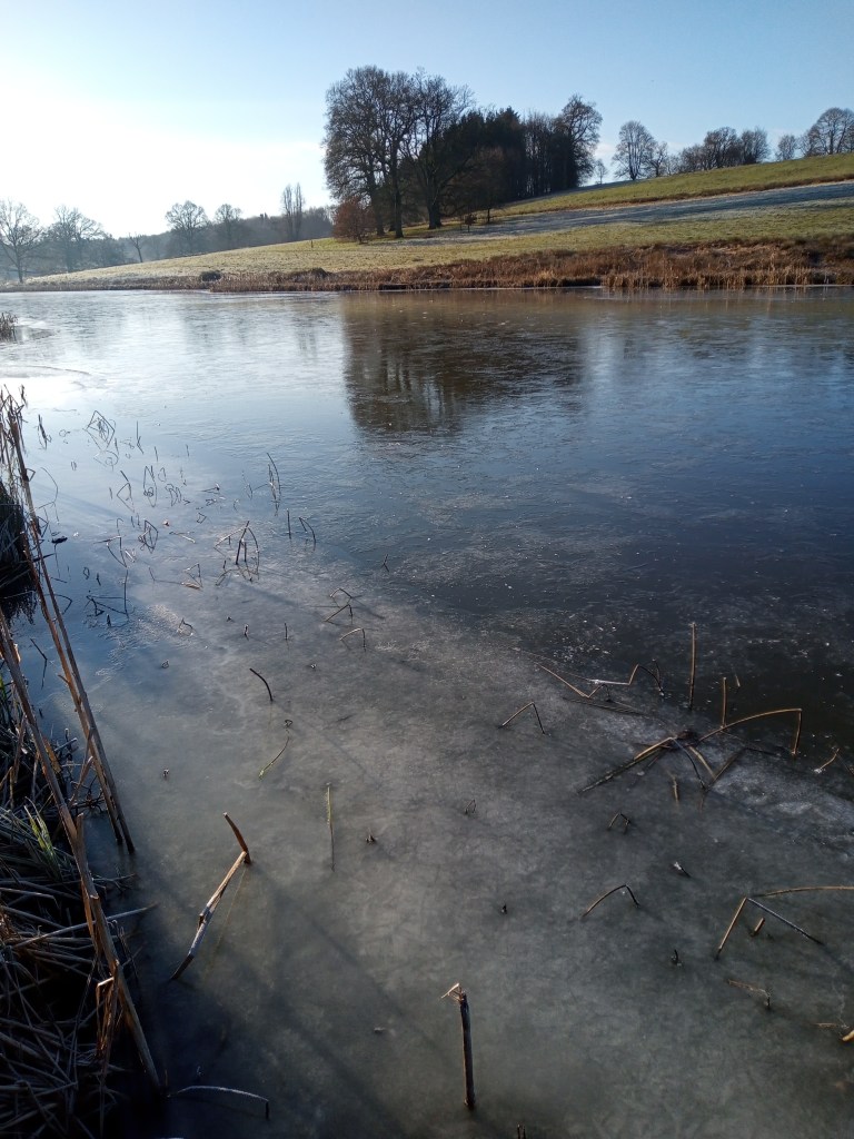 With the imminent arrival of Gareth and family on the Saturday I took the advantage of going to Bowood alone armed with ice breaker (sash window weight and chain on rope), as several days of sub-zero temperatures had certainly frozen it. Arriving at peg 10 with -2C temperature I set to work but after 30 minutes of hard graft I was in no way near to being able to fish!