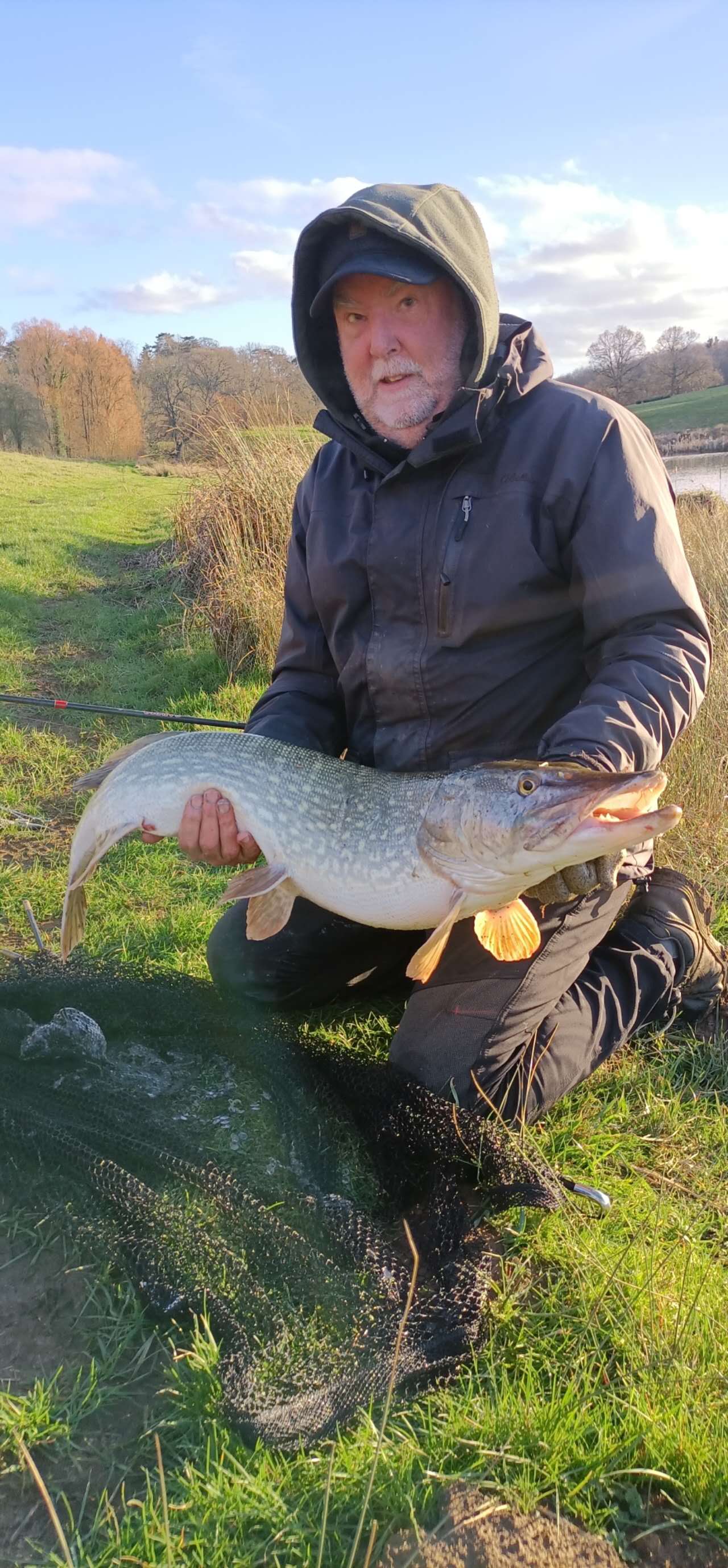 Anyway on their return it was The Tuesday that I had my first excursion of the month as a dodgy knee required some rest and a visit to the doctors. So Gareth and I fished Bowood from 2:30 to 4pm, I plonked him on 10 and I had 9. Nothing much to write home about for me with 4 roach, 6 skimmers/blades and 15 rudd for 1-15. Gareth on 10 had about 50 silvers but my day was made when he had a run on the pike rod and he hit a fish that was keeping down and felt heavy, I suspected a good double but Gareth’s face was a pictuire when it surfaced and I subsequently netted it – a new PB of 17-05.