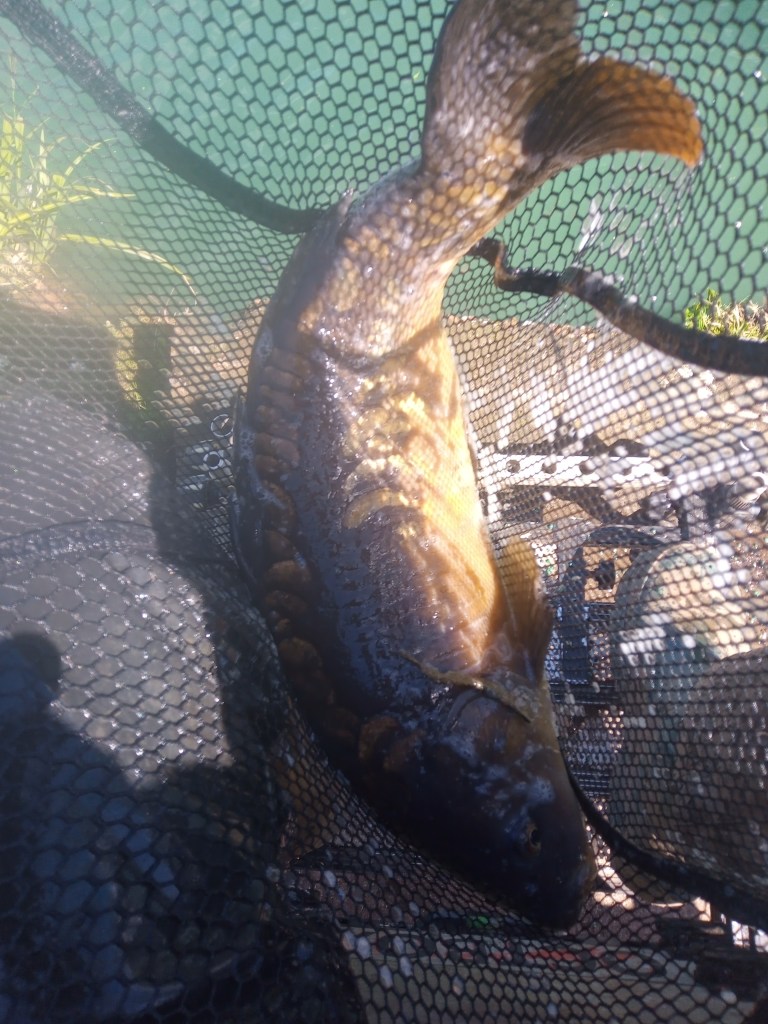 Starting on the short line after cupping out a handful of micros to 11m and a large pinch on the 2+2 line it was very quiet, I fed some chopped worm and caster on the 2+2 line with some caster and started feeding a pinch of caster every put in. Eventually I began to get the odd bite but decided to try the long line which I had been feeding with catapulted micros and an expander on the hook to no effect. I brought the rig in and made some adjustments, flicking it out directly in front of me I was putting the pole together when the line tightened and a carp of 3-12 took the expander!