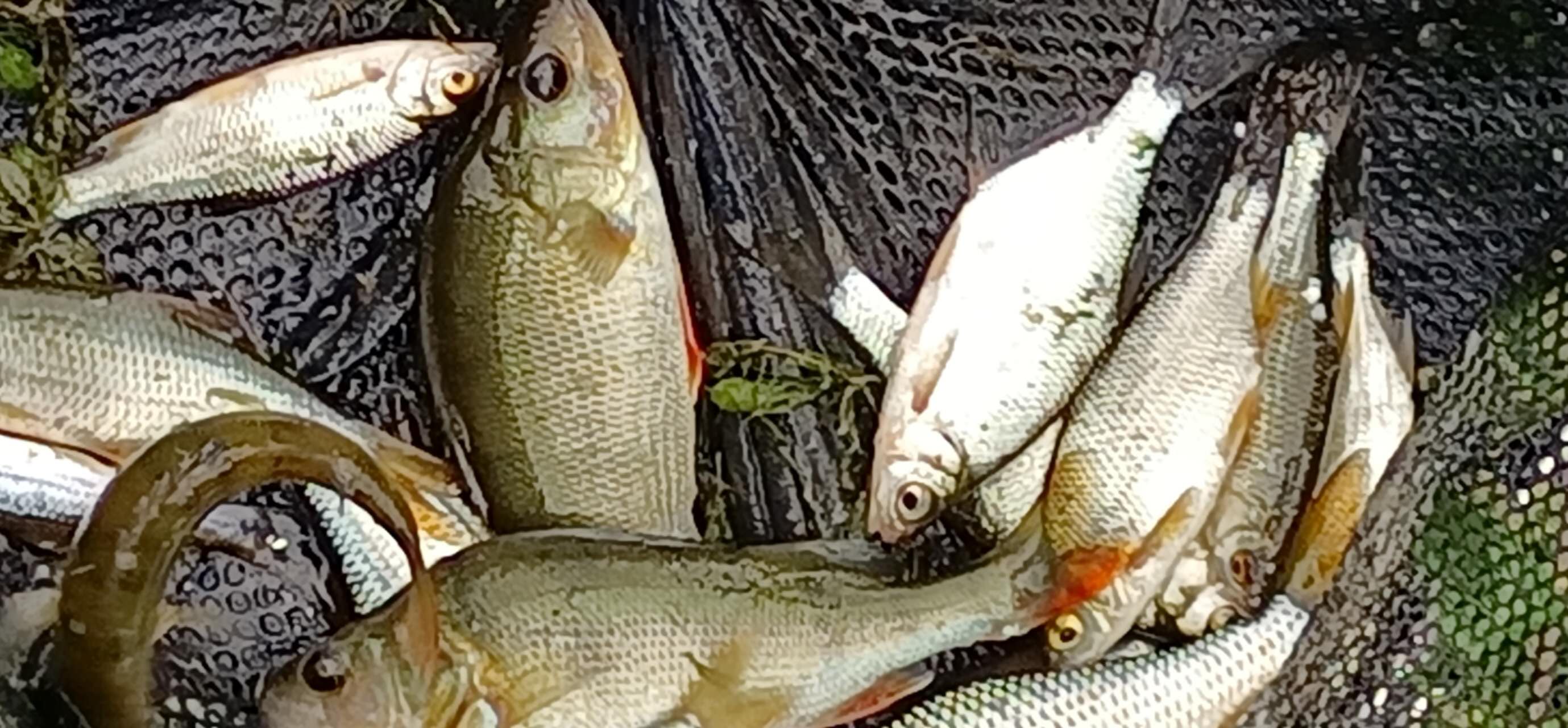 Wednesday 2:30 to 4:45, I was on 6, Gareth went on 5. Gareth had no luck and 2 roach and 6 rudd, while I had a bream of 2-10, 8 rudd and a pike of 5-02 on the pole which was interesting to say the least! No fishing until the Monday as Gareth and family went off to do various things. Gareth fancied going light and fishing the Pondtail, as I had asked about fish from the bank as the temporary compound they had set up for the bridge repair was still in use, cutting off access to the platforms. As it turned out it seems the last few sections had been angled to allow access to the last platform so we both went on that . Gareth fished the feeder and I fished a waggler. Gareth had three roach on the corn or maggot while I had 9 roach and a perch on double wheat in the short time we were there.