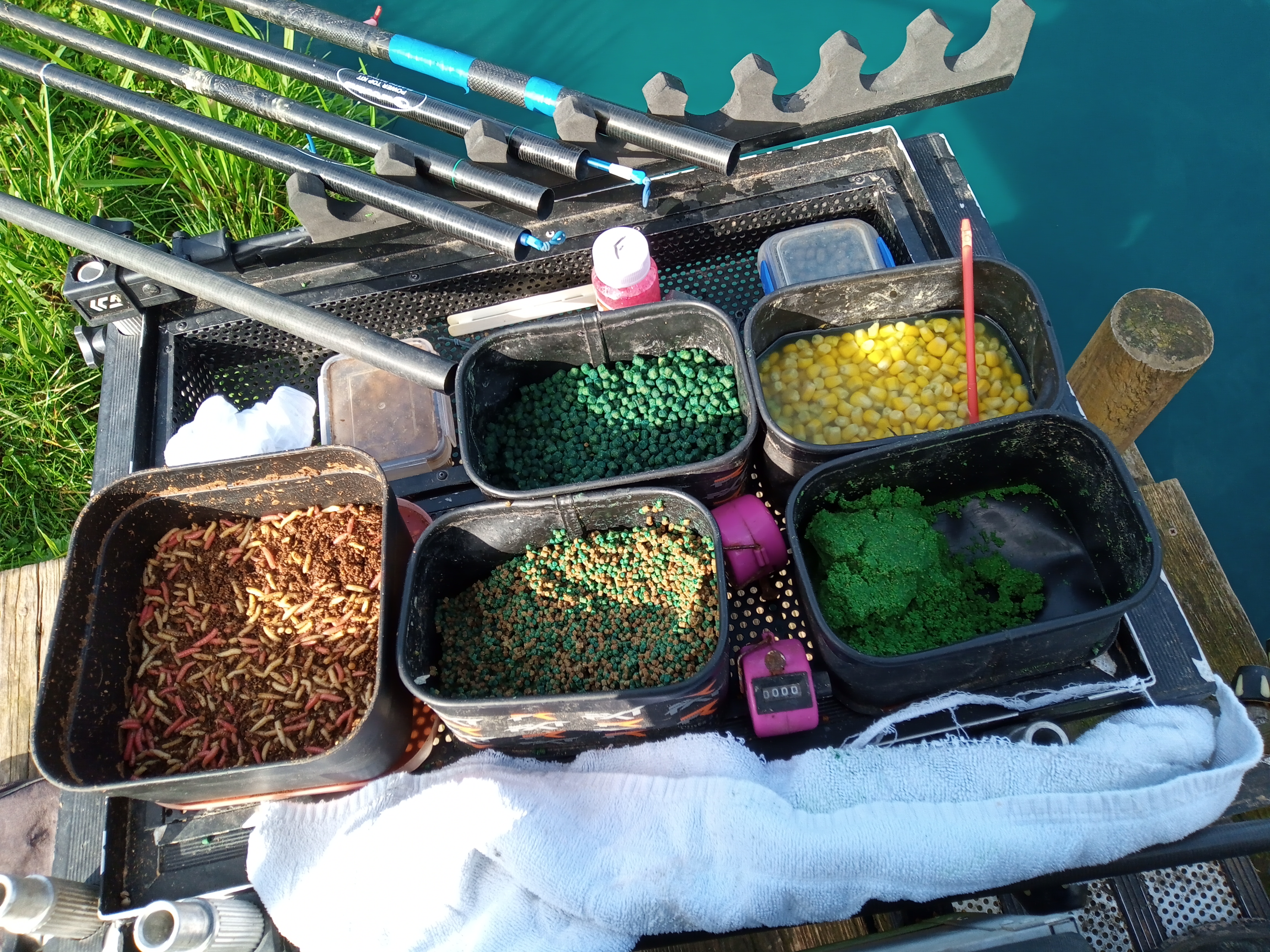 Yes I was end peg with plenty of room! The four rigs I set up were a paste rig for 2+2, a pellet rig for on the deck, an on the drop full depth rig and a margin rig for both edges. Elastics were 2.2mm hybrid Chinese ones with rigs mainly 0.16 to 0.14mm with hooks 16 apart from the margin and paste which were 14 and 12 respectively. No groundbait allowed so corn, paste, micros, 4mm, expanders and three week old maggots were the baits of choice! Starting at 2+2 on paste and potting in some micros it took about 10 minutes before I had a bite that resulted ion a carp of about 4lb hooked in the tail- at this point the alarm bells should have been ringing! After the first hour I had clicked 11lb and then things went to pot (literally). To cut a long story short I weighed in 23-13 after long blank spells interspersed with 14 fish hooked- all foul hooked- and 14 fish lost! My worst day at the venue and last in four peg section ! I was not alone as Herbie was opposite me and suffered a similar fate getting only one carp and a few silvers.