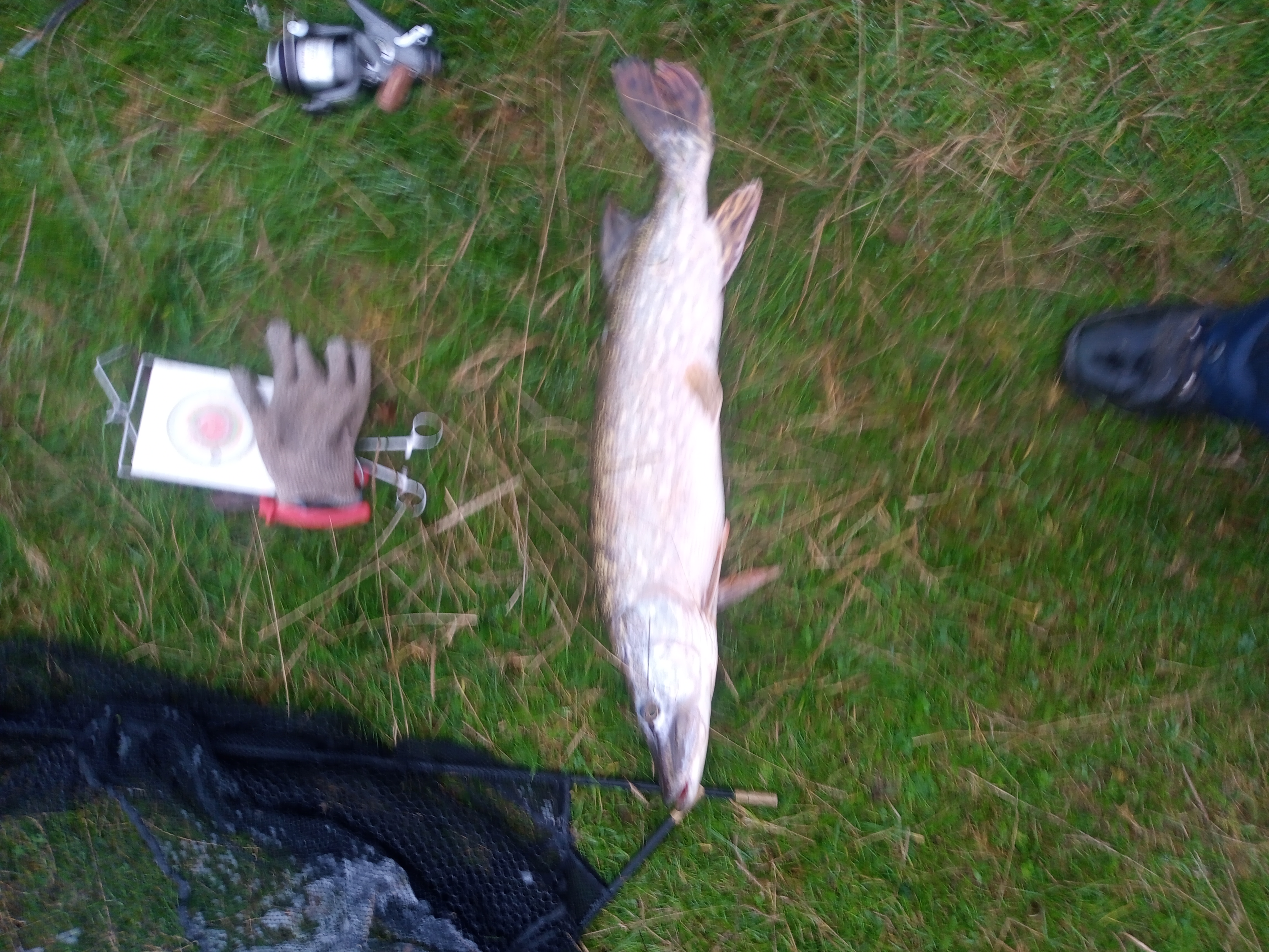The pole line was eventually fed with a couple of balls of groundbait with some micros, corn and wheat which produced 16 rudd and 4 roach for 2-08 fishing my lighter set up as previously.After the first pike it was a forty minute wait until the float zipped under for a more sluggish fish of 7-02. A further twenty minutes later I miss a run!!! Recasting leads to another run after ten minutes but this time on striking all hell breaks loose, the clutch screams and a very big pike is on, playing it carefully it breaks surface and if looks a damn sight longer and thicker than the twenties I have had -then disaster, the hook inexplicably pulls!!! I have a coffee to steady myself before recasting and at five to twelve the float goes again with a fish if 8-06, at which point I call it a day with a 26-12 total as the sardines have been seriously depleted.
