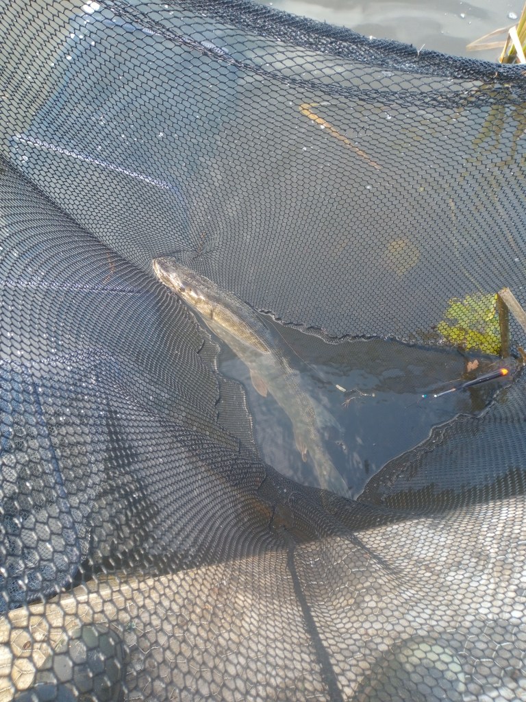 With my match commitments over until February my attention turns to Bowood. Tuesday 15th October, my late father’s birthday is a day I always try to go fishing if possible as it was he who started me on my fishing journey. Anyway peg 10 was available and I had the lake to myself so setting up the pike rod I realised I only had a few usable sardines left so a visit to Devizes to order some fresh was in order. First cast was 9:15 and I fished until 12, I just managed to get the pole set up and the depth plumbed when the pike float bobs and sets off resulting in a very feisty fish of 7-12 coming to the net eventually.