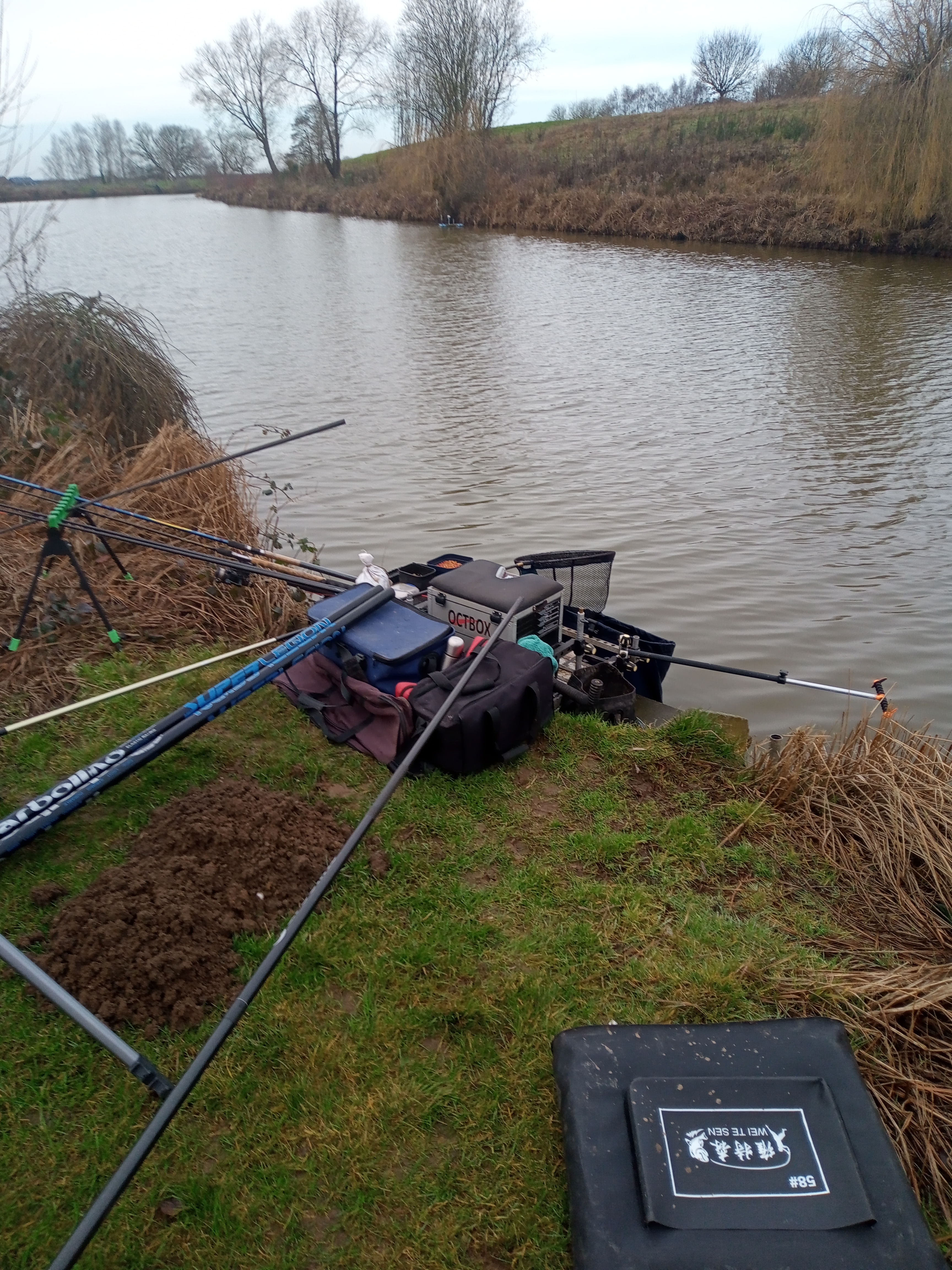 I set up as I intended a short pole (top 3) with a 3 x n08 float with 0.10mm hooklength to an 18; long pole with a 1g Paster float again to a 0.10mm and 18; the waggler with a homemade sarkandas cane insert waggler taking 4AAA and my Preston 10 ft bomb rod with the mandatory 20 inch hooklength to a barbless 17 hook. Groundbait was a mix of F1 cold water dark and Swimstim natural.