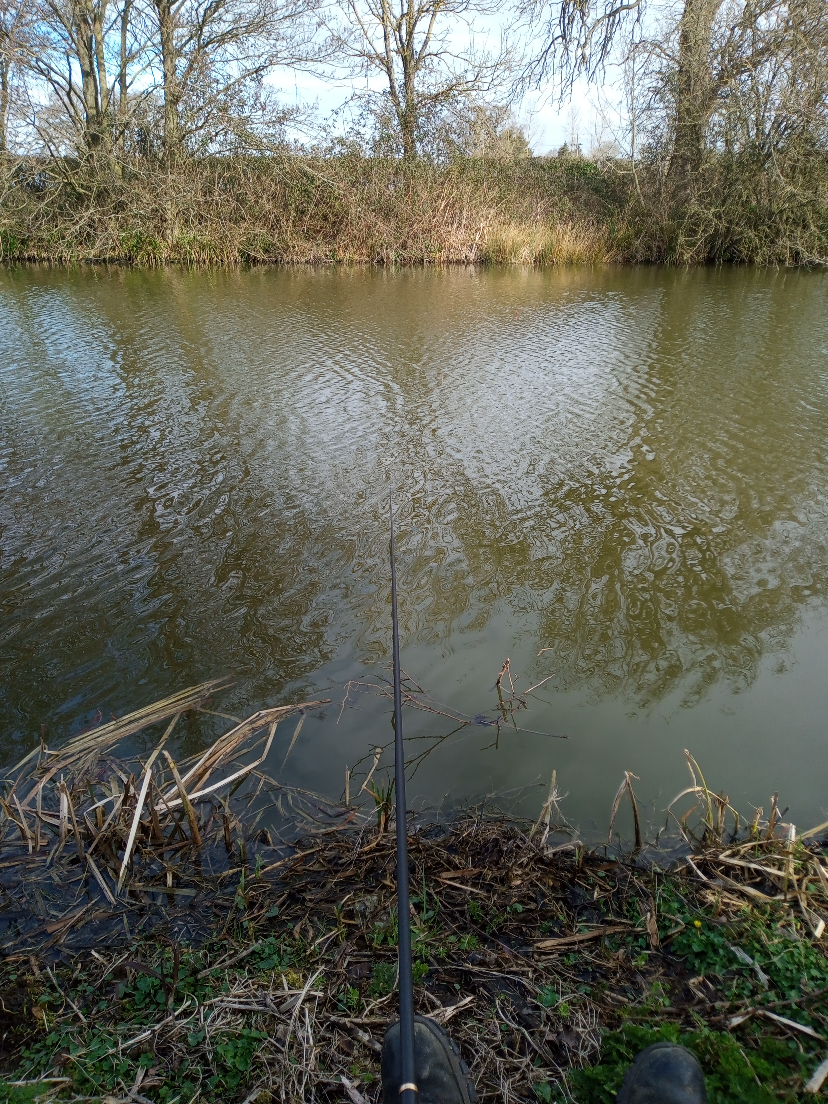 So Bowood is no more, until June 16th, so the canal is available for piking until the end of March so Tuesday18th sees me heading to Rowde with the rucksack bag, a 3m whip and a pike rod, large oval landing net and unhooking mat (compulsory on canal for pike) and fold-able groundbait bucket with bait. I was planning to fish the first pound away from Devizes from the road bridge, on arrival there were several boats moored up and I ended up in a large gap well away from them about half way down the wall.