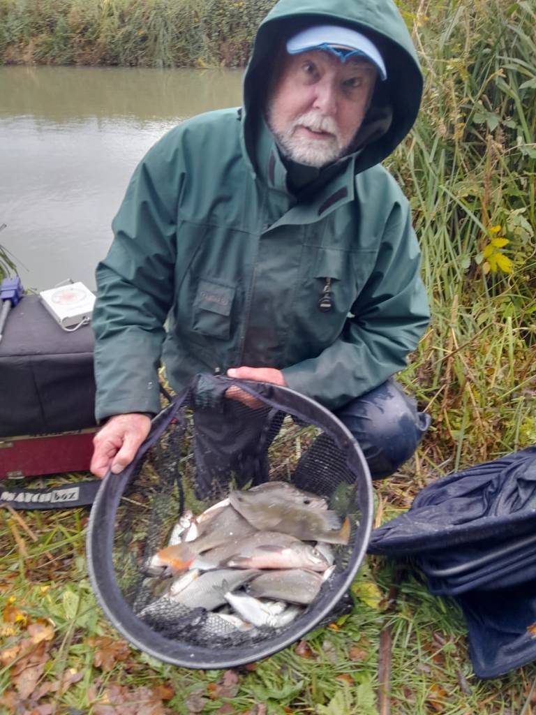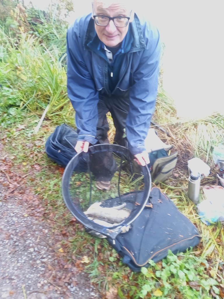 Monday comes around and the sunny fine day of Friday at Semington is replaced by dull wet weather! Clive and I met up as arranged and I led him along the pounds to the pump and put him on the first peg I had fished as it was flatter and no vegetation in the way while I dropped in to the newly cut one from Friday. I had told Clive pole only as it was an ideal opportunity for him to get used to the pole while getting plenty of bites. To cut a long story short the day went off with intermittent rain and dry spells, Clive lost a good fish to a hook pull, possibly a big perch but did manage to get a perch of 1-04 plus a load of smaller fish for a 4lb total.I had a similar experience losing 3 good fish , landing a perch of 1-12 in a total of 8-07. The pump was active for about 30 minutes during which bites dried up significantly. However, the myth that SidestreamBob can’t catch fish is well and truly smashed after his exploits today and earlier in the season. (You will notice he is far better at taking photos than me!)